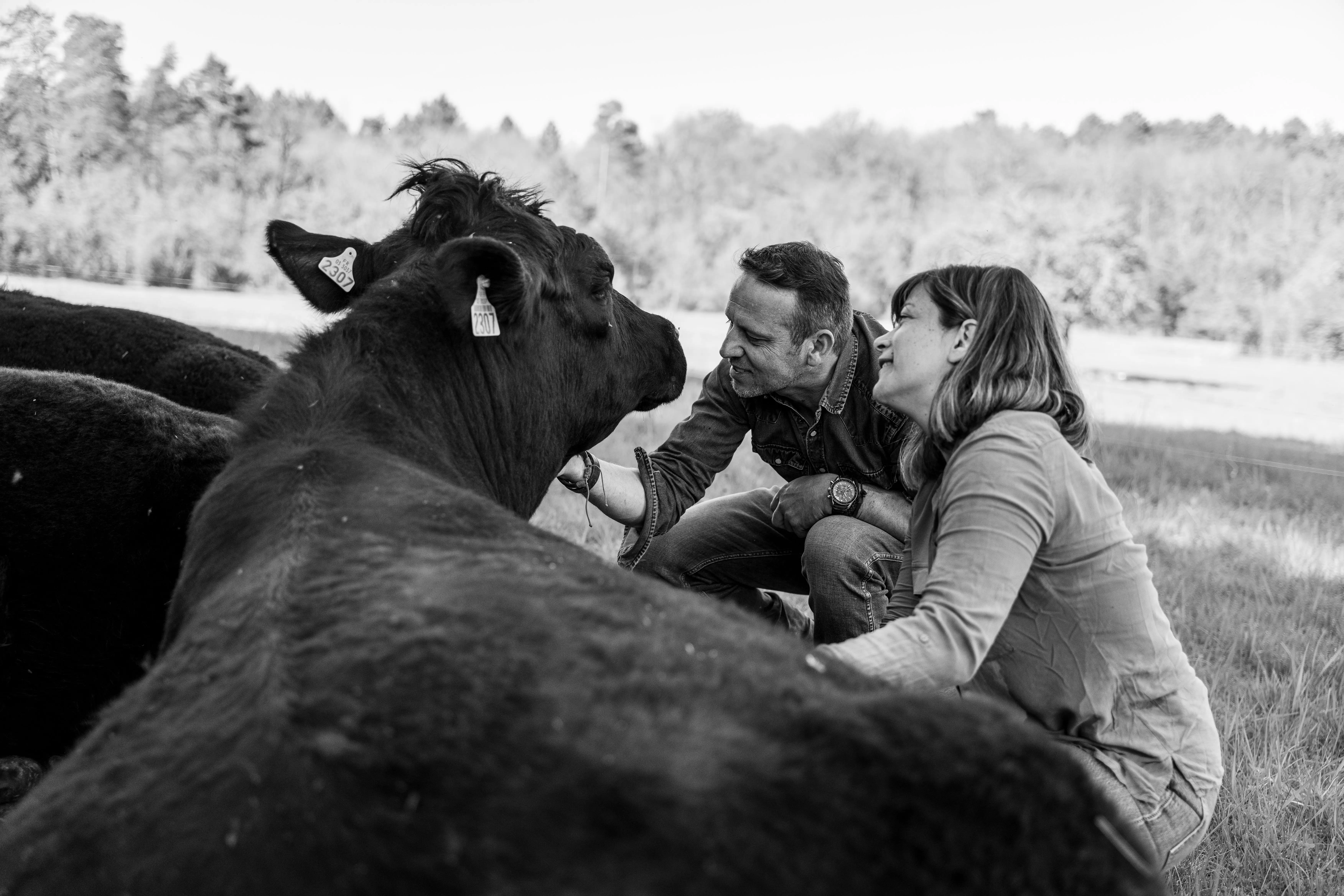 Elevage de vaches de race Aberdeen Angus. Vente de viande de bœuf Angus sur commande à la ferme, en livraison et expédition de colis frais.