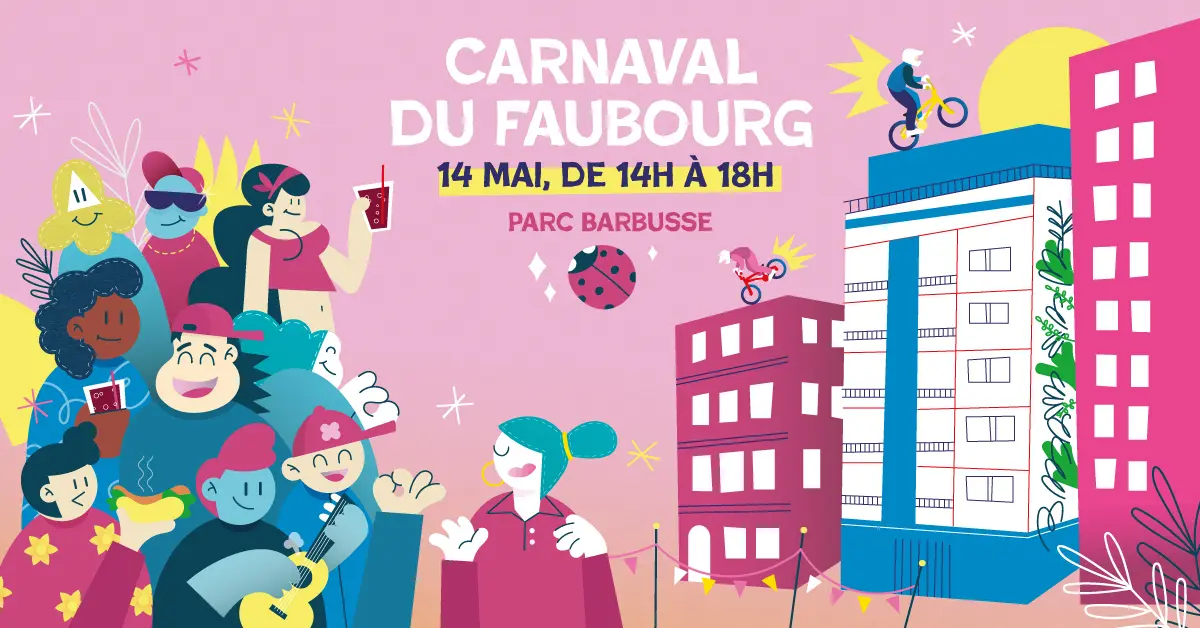 Rendez-vous le 14 mai de 14h à 18h au Parc Barbusse pour le carnaval du Faubourg de Béthune, placé cette année sous le thème de la FIESTA à l'occasion de la 7e édition de lille3000. Une journée parfaite pour toute la famille avec une multitude d'activités, entourés de la nature et de la musique.