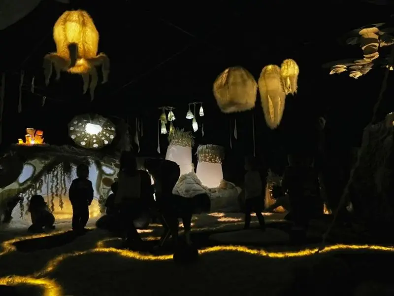Regardons le monde comme un tout-petit. (é)Mouvoir explore l’impermanence avec une scénographie sensible où l’enfant évolue librement. Pluie, herbes et mousse deviennent caresse, chemin et écrin. Un moment poétique et partagé entre adultes et enfants.