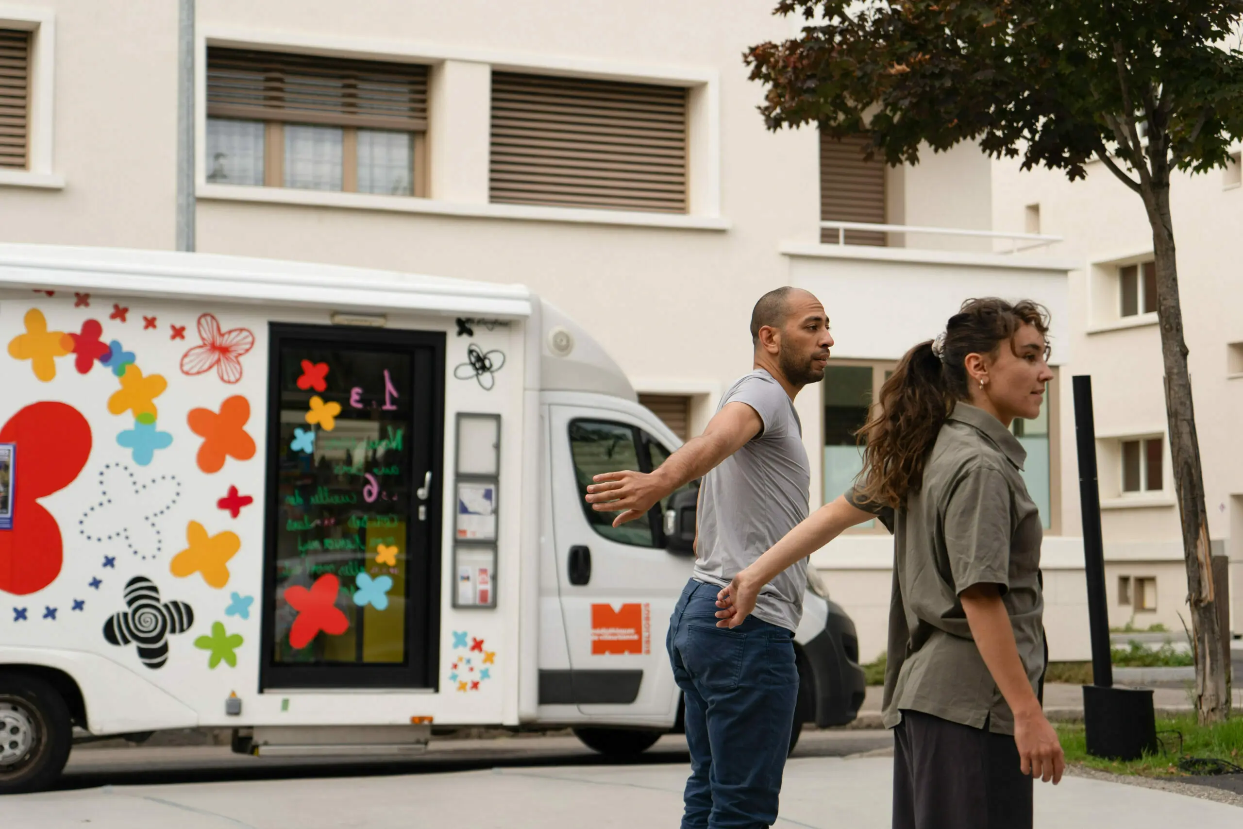 L’exposition C’est quoi ton rêve ? est un projet de la Compagnie du subterfuge qui mêle photographie, parole et danse, mené directement dans les quartiers des Buers et du Tonkin de Villeurbanne. La compagnie invite les habitants de tout âge à répondre à la question « C’est quoi ton rêve ? ». À partir de leurs mots, les artistes ont imaginé des portraits photographiques où chacun met son corps en mouvement pour donner forme à son rêve, guidés par un travail chorégraphique. Cette démarche artistique et participative, accompagnée par le bibliobus, propose de découvrir la ville à travers les aspirations de celles et ceux qui l’habitent. Les photographies montrent comment, dans un environnement dense et souvent impersonnel, les rêves peuvent se matérialiser, et offrir une autre lecture de la ville, plus poétique et humaine.