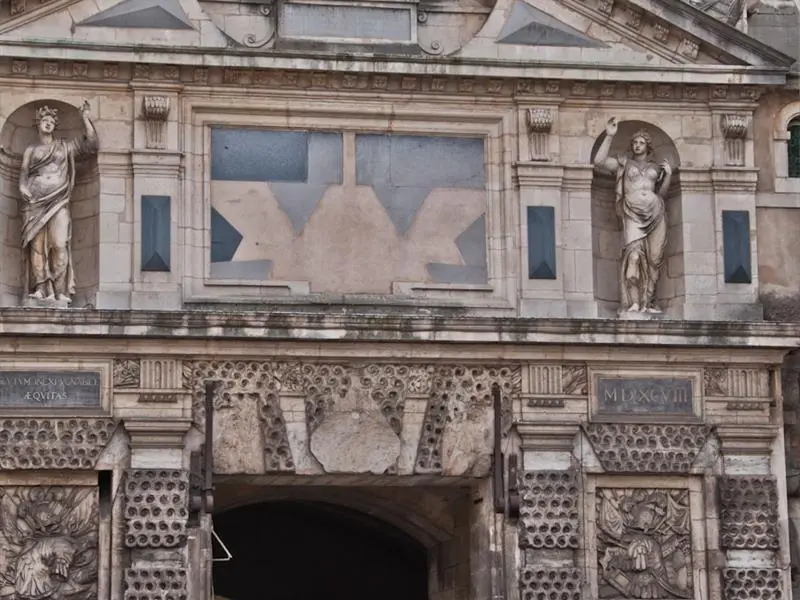 Le duc Charles III la fit édifier au XVIIe siècle pour doubler et renforcer la défense de la ville. Elle était alors entourée de quatre bastions et séparée de la porte de la Craffe par des fossés. La porte délimite aujourd'hui le quartier de la Vieille Ville et le faubourg des Trois Maisons. Le rempart sur le côté est surmonté d'un jardin d'inspiration médiévale.
