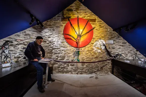 Vous vous amuserez à reconnaître ces personnages. La voix enregistrée du forgeron vous guidera dans votre exploration. Vous sourirez, vous vous interrogerez et parfois même vous serez émus... Claude est un artisan passionné par la forge. Dans cette grange rénovée, sont joliment exposées une centaine de sculptures témoins de 40 ans de travail et d'autant d'années d'interrogations sur la société et les événements qui ont marqués Claude. Pour les groupes, visite guidée avec un commentaire sur chaque personnage présenté, démonstration d'une pièce forgée sur l'enclume au sous-sol.