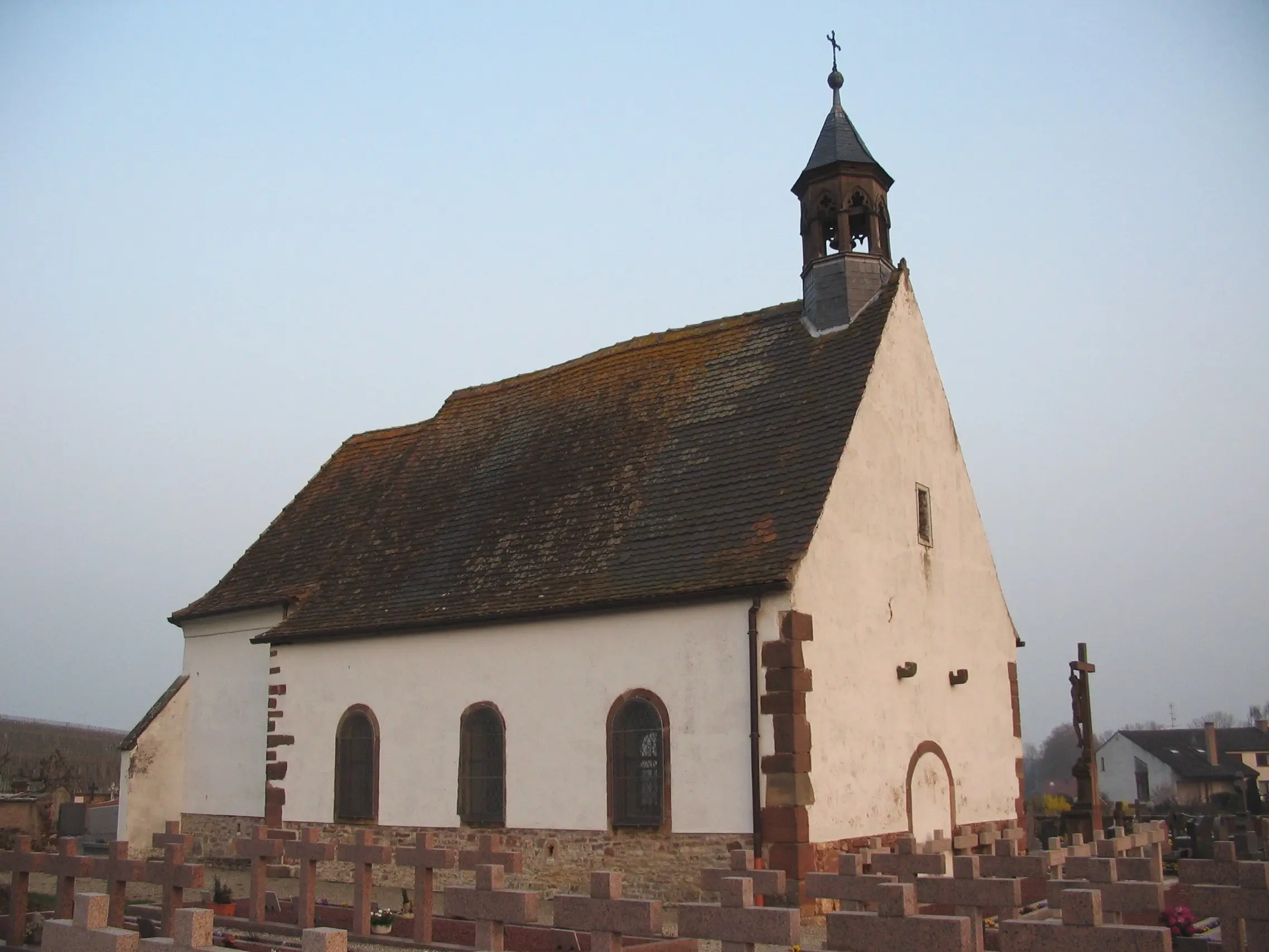 Blottie dans un écrin de vignes au lieu-dit Le Canal, cet édifice date du 15e siècle, mais elle est mentionnée dès 1342. Elle se situe au milieu du cimetière et se compose d'une nef et d'un choeur hexagonal. A l'intérieur se trouve encore 2 tableaux de Carola Sorg (1833-1923) - peintre de Mutzig spécialisée en peintures religieuses : les "14 saints dits Auxiliaires ou Auxiliateurs" (dont St Denis) et le purgatoire. Il y a également une statue de Saint Denis avec 2 têtes et une pierre tombale dans le sol dédiée à la femme du meunier. La chapelle a été rénovée en 2000 par des bénévoles.