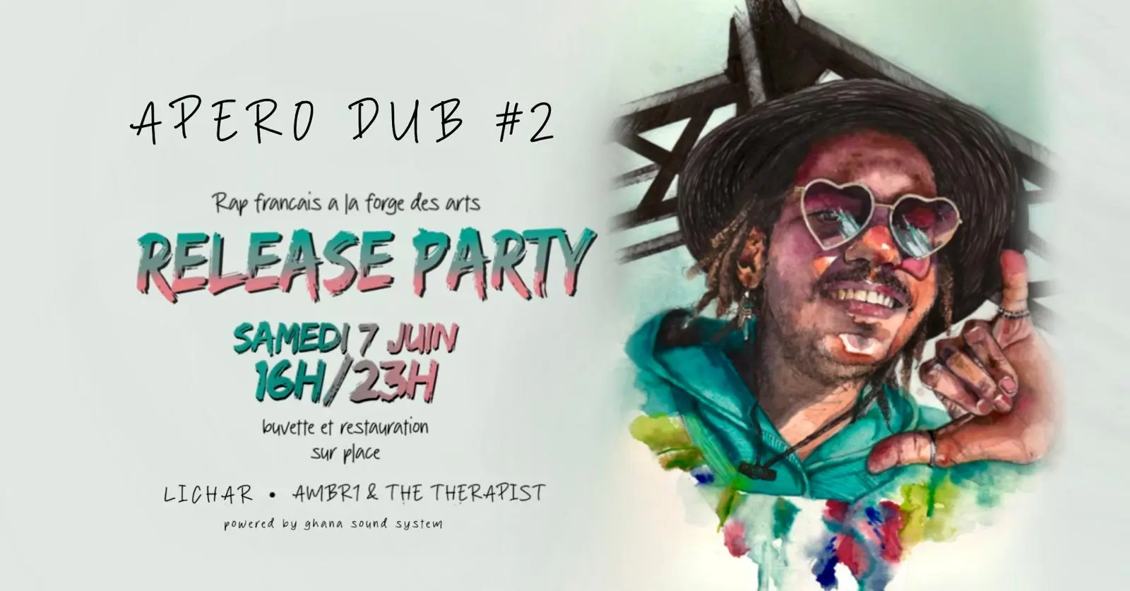 Warm up Reggae Dub par le Ghana Sound ainsi qu' AMBR1 en première partie suivi par le Rappeur Lichar . Au programme donc, un magnifique lieu pour profiter du soleil, de la musique, une buvette, de la restauration, un CBD Shop, du partage et des sourires ! Prix Libre