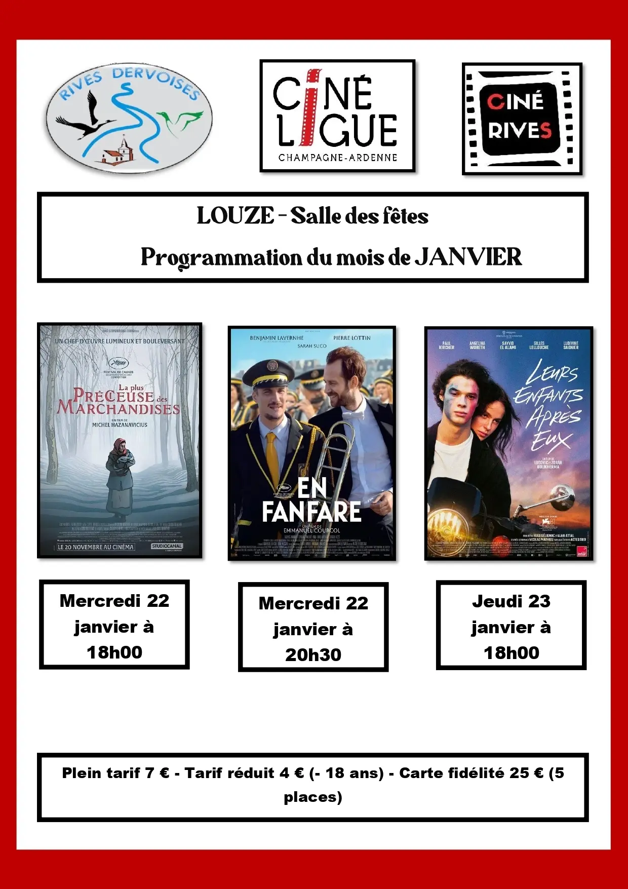 Tarifs : Plein 7€ Carte abonnement 5 places 25€ Réduit – 18 ans 4€