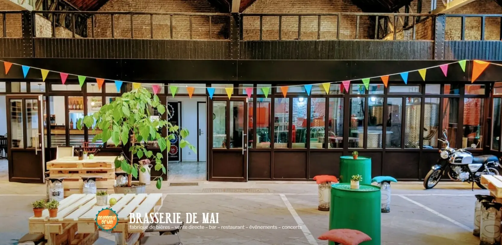 Ouvrir dans Google MapsUne fabrique de bières authentiques, éco-responsables et locales ! La Brasserie de Mai, installée en plein cœur de Carvin, propose 5 bières permanentes et une bière éphémère à chaque nouvelle saison. Fabrique de bières – vente directe – bar – restaurant – événements – concerts ... La Brasserie de Mai, c’est aussi le Bistrot de Mai, un lieu de vente et de dégustation de nos bières où vous pourrez goûter nos tartines aux drêches et participer à des ateliers de brassage collectif !