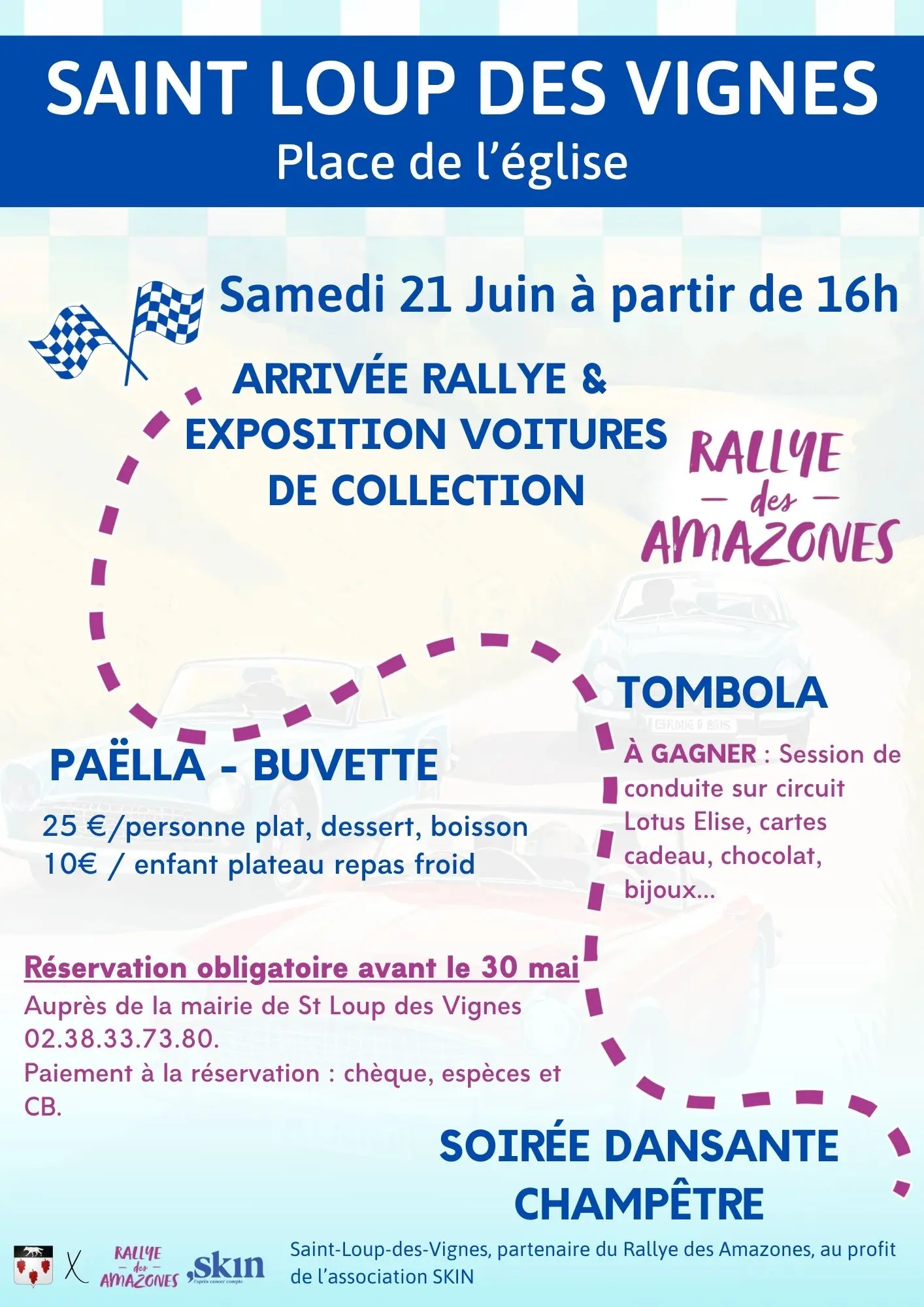 Le Rallye des Amazones est un rallye d'orientation ludique, ouvert à tous (hommes et femmes), accessible aux voitures de collection, Youngtimers et GT modernes d’exception. Au programme : environ 150 km de route avec un road-book exclusif, mêlant défis, découvertes et animations. Cette journée conviviale et solidaire accueille aussi les “Femmes Skin” pour soutenir une cause importante. L’objectif ? Briser l’isolement lié au stress post-traumatique, sensibiliser à l’après-cancer et récolter des fonds pour l’Association SKIN. Sur place : tombola, paëlla et soirée dansante champêtre pour partager un moment unique.
