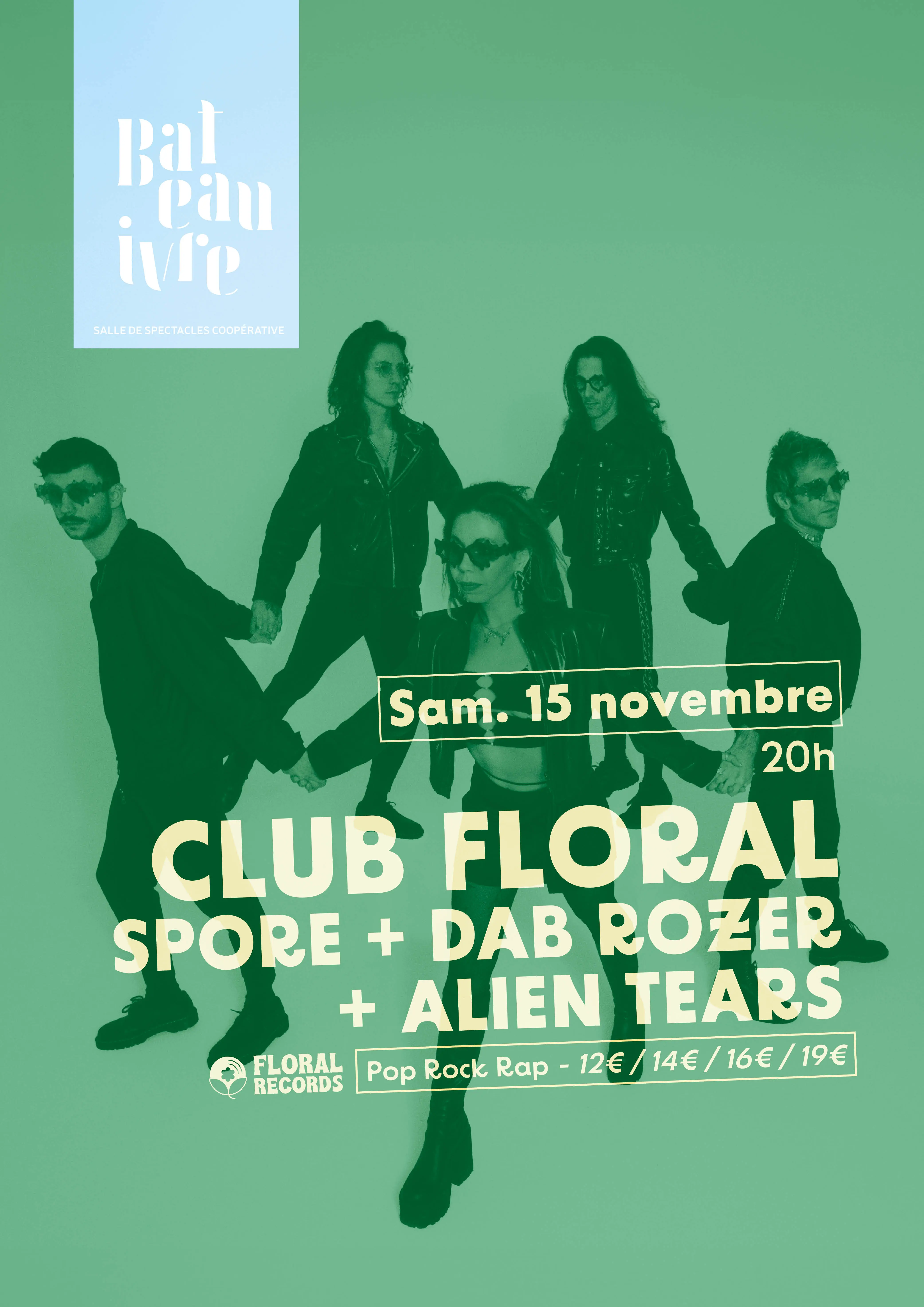 Floral Records lance Club Floral, un événement aux couleurs des fleurs, avec des artistes du label, mais pas seulement. C’est généralement un format concert avec 3 groupes lives, sans tête d’affiche. Là où la Floral Party dure toute la nuit, le Club Floral est plus court. Pour cette première au Bateau Ivre, nous accueillerons SPORE et Dab Rozer.