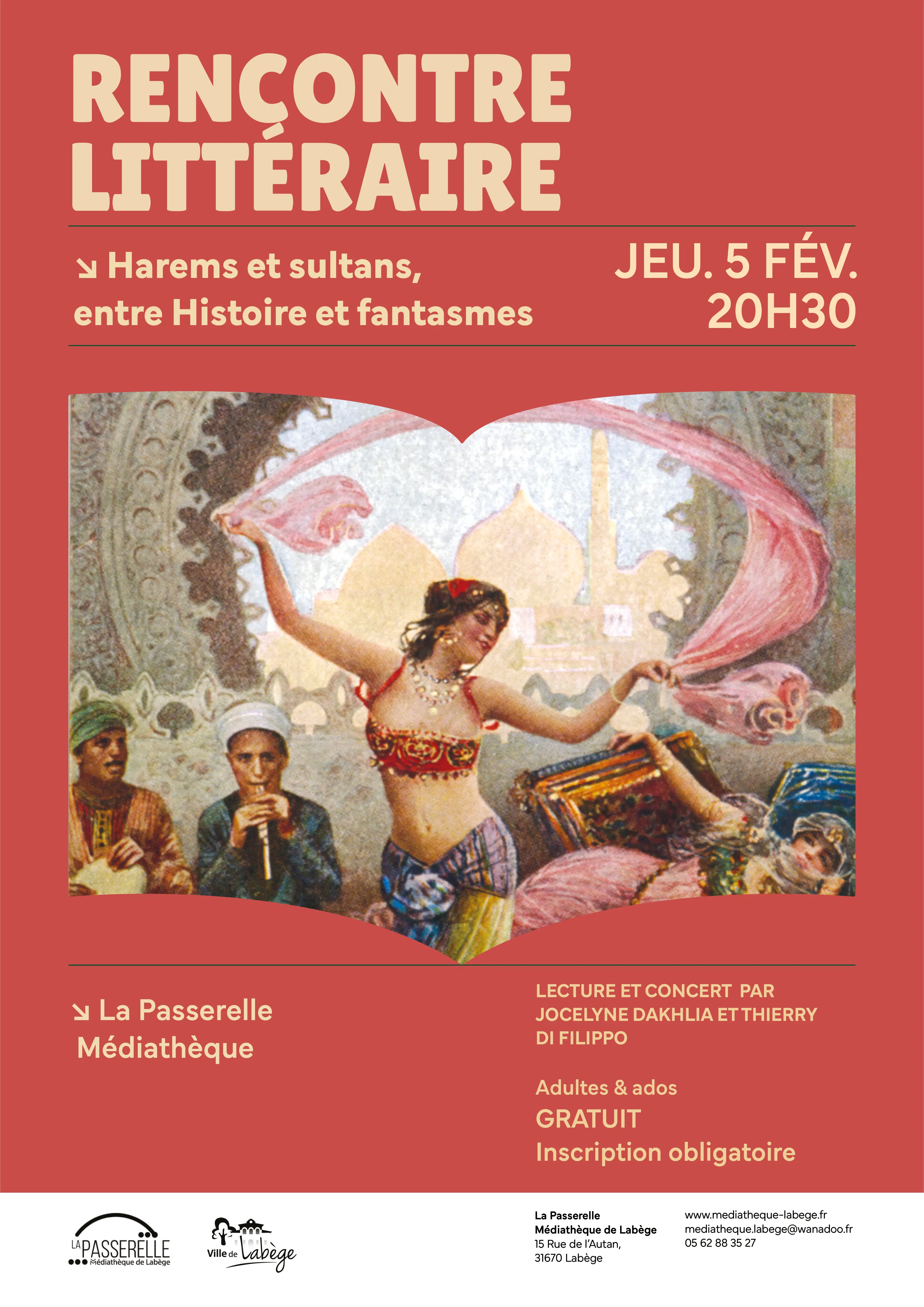 En entendant le mot « Harems », se plaquent dans les imaginaires occidentaux des tableaux de femmes lascives, cloîtrées dans la pénombre en attendant le bon vouloir d’un sultan, marquant une incompatibilité présumée entre Islam et démocratie. Jocelyne Dakhlia entreprend, dans son ouvrage, de démanteler ces idées culturalistes construites au fil du temps, en utilisant des sources textuelles et picturales depuis le Moyen-Âge jusqu’au XXe siècle. Son travail apporte une vision plus fine et nuancée des rapports entre pouvoir, société et genre dans le monde islamique. Jocelyne Dakhlia offrira la possibilité d’un échange autour de ces thématiques, ponctué de lectures d’extraits et de musique orientale.