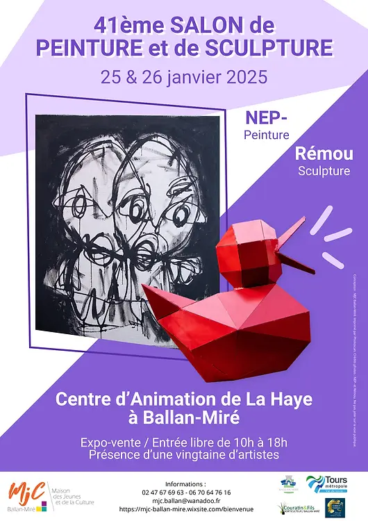Découvrez une vingtaine d'artistes au Centre d'animation de La Haye à Ballan-Miré, ainsi que l'invitée d'honneur Laurence Dréano ! Vous pourrez voter tout au long du week-end pour vos artistes coup de cœur.